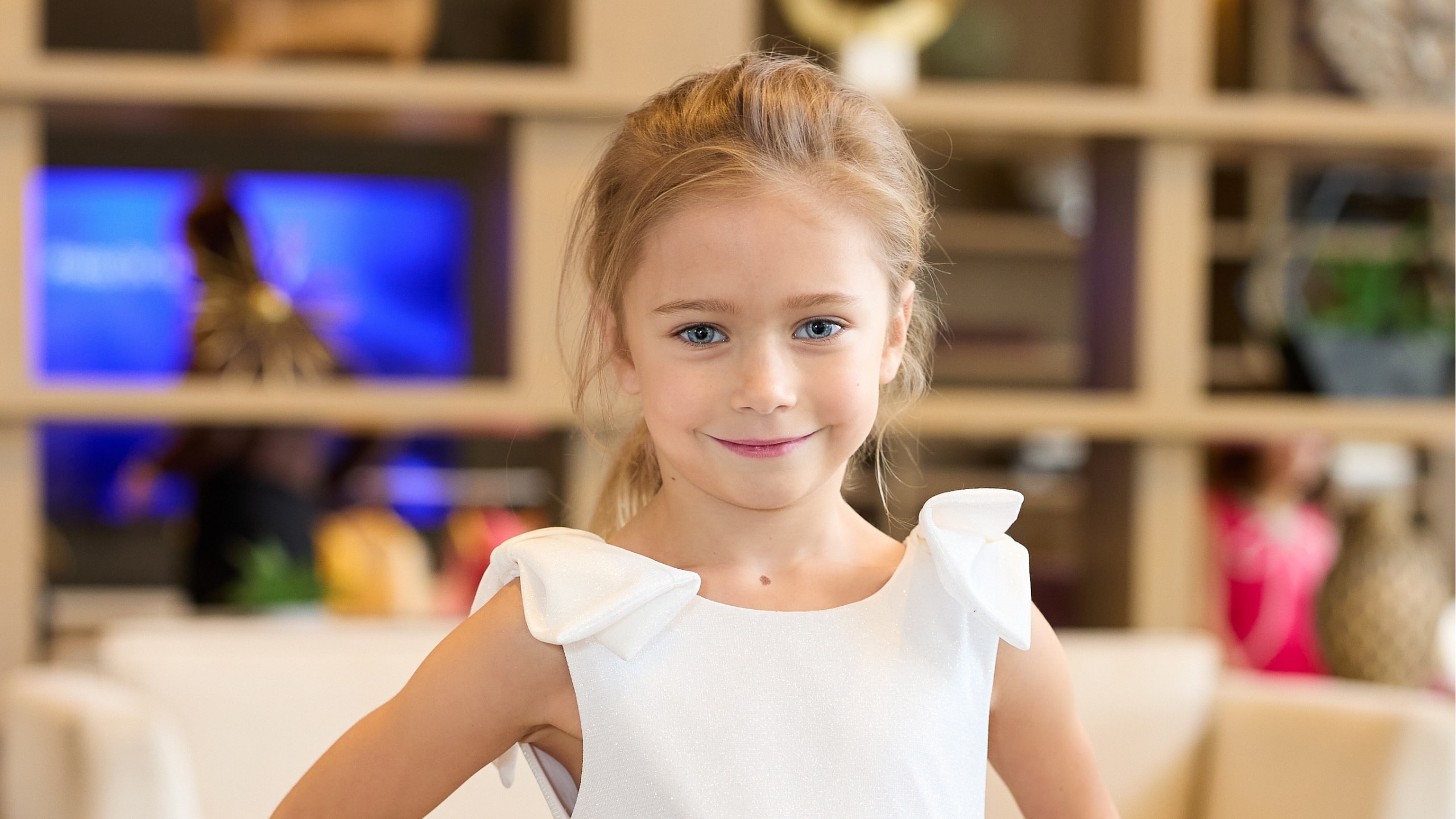 Diana is a first-grader from Hollywood, Florida who believes her hands were made for kindness, love, and drawing fairy tales. When she's not painting, she's winning chess tournaments, breaking boards in Tang Soo Do, or practicing piano. Talent runs in the family — her dad is Ukrainian-born chess Grandmaster Olexandr Bortnyk, a graduate of Admiral Makarov National University of Shipbuilding and 2014 World Youth Chess Champion, and her mom Evgeniya, originally from Belarus, is a Cambridge College–trained radiologist, co-founder of the Bortnik Chess Academy, and founder of the Lady of the World pageant.